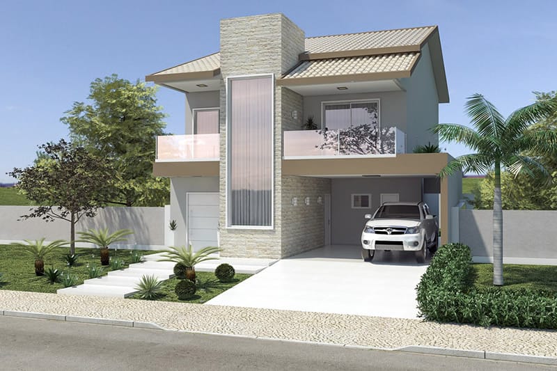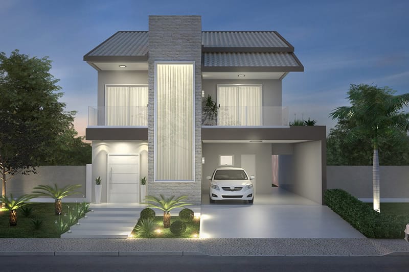 Conheça um dos nossos projetos favoritos, com fachada moderna e telhado aparente, essa casa possui garagem para duas vagas e três dormitório, sendo o de casal com suíte e closet. Todos os quartos tem um ótimo aproveitamento dos espaços com guarda-roupas embutidos. O pavimento superior fica bem isolado da parte social da casa garantindo uma maior intimidade. Na área social da casa temos o pavimento térreo, onde sala de tv, sala de jantar e cozinha são integradas e com acesso para uma ótima área gourmet, um local para aproveitar o convívio em família. Com boa distribuição dos cômodos, conseguimos liberar espaço no fundo do terreno para um jardim planejado junto a uma piscina com hidro, perfeito para momentos em família e finais de semana.